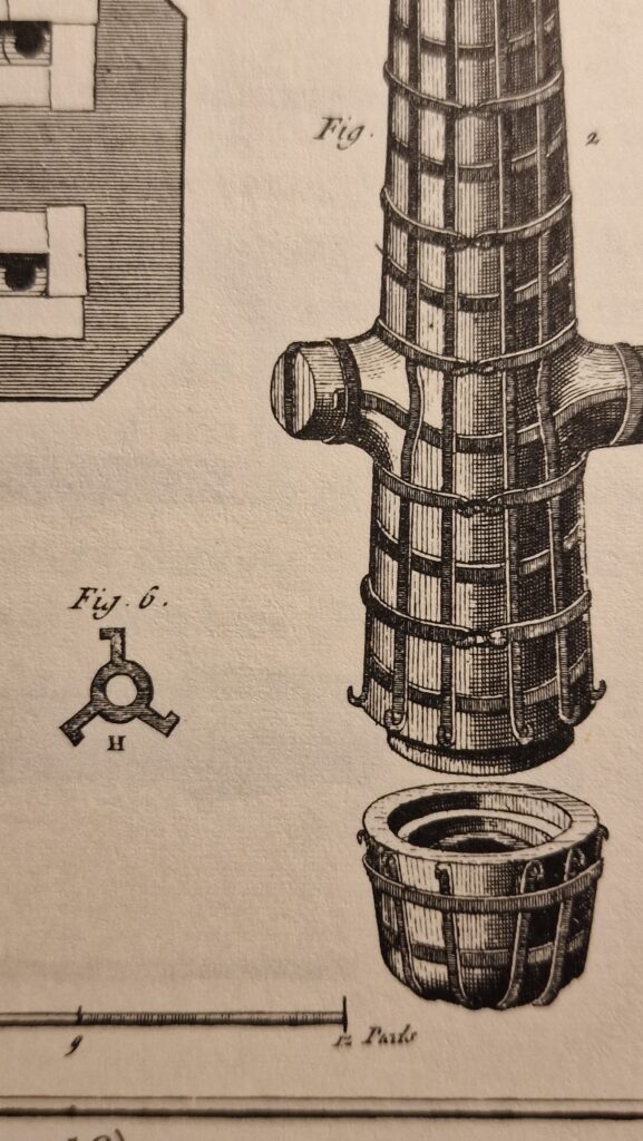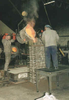 To start, a pattern is made of wood and other materials in the shape of the cannon and that is used to make a mould. Molten metal is poured into the mould to produce the barrel. It is then bored, smoothed and engraved to produce the final gun.